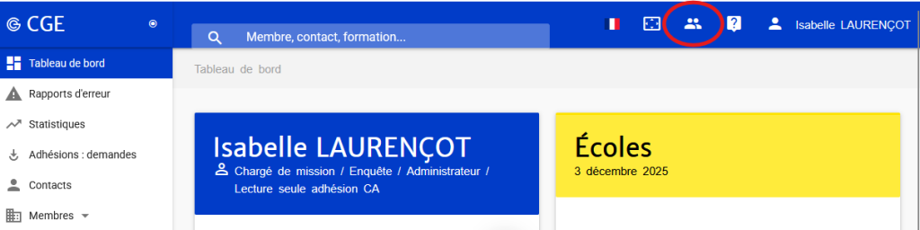 Les notions de Groupes de Travail ou de Commission de la CGE sont transformés dans Teams en équipes. Vous allez donc voir la liste des équipes auxquelles vous appartenez (colonne à fond blanc ci-dessous).